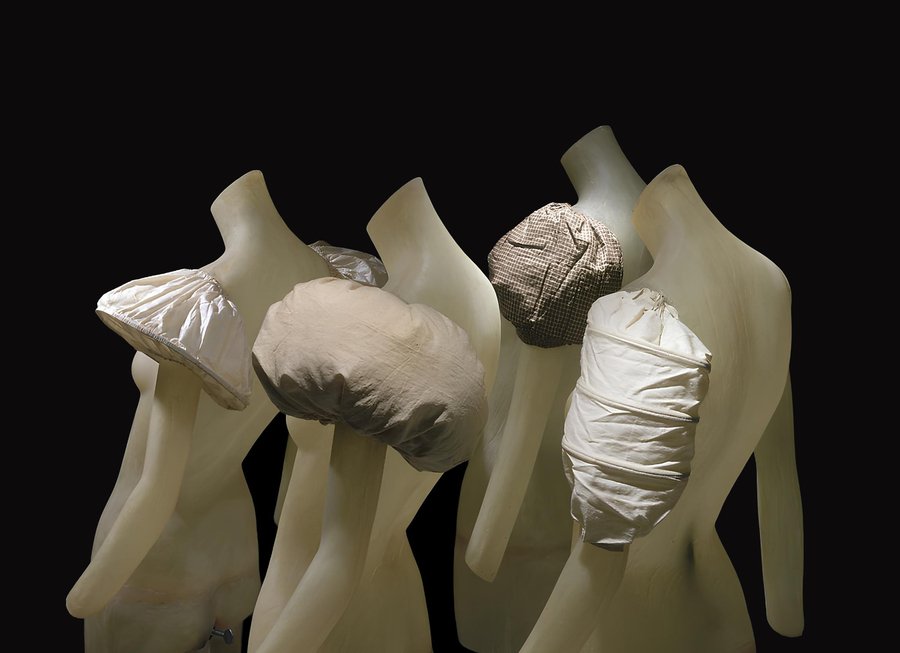 Исторически силуэт женского платья имеет мигрирующие от эпохи к эпохе акцентированные объемы, считающиеся привлекательными. Часто они представляют собой утрированные в некоторой степени естественные контуры тела, которые достигают «идеала» с помощью дополнительных конструктивных элементов: нижнего белья, подкладок, утягивающих или создающих форму деталей. Сильвия Бомбардини замечает: «Тело воровки не обязательно заканчивается там, где заканчивается её кожа, его можно понимать как нечто расширяющееся и включающее в себя внутренние изгибы и полости, где хранятся украденные вещи» (Bombardini, 2024, 92). Это заключение можно экстраполировать на случаи контрабанды и незаконного хранения. В изучаемый период наиболее очевидными примерами расширяющих границы тела конструкций служат периодически переизобретаемые объемные рукава, кринолин середины XIX века и турнюр второй половины XIX века. Все они могут быть по-разному реализованы, в том числе в виде полых форм.