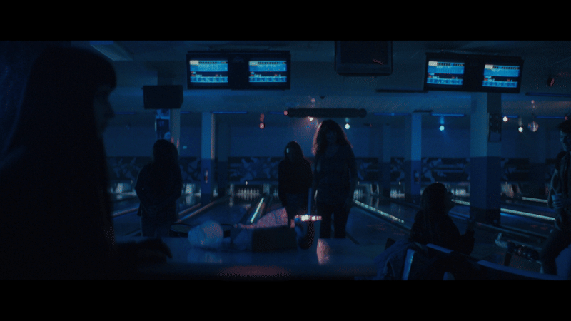 Саша, главная героиня фильма «Вампирша-гуманистка ищет отчаянного добровольца», как и Кали мечтает о жизни обычного человека. Мы видим кадры, схожие с наблюдением маленького вампира за игрой сверстников в мяч: Саша смотрит из окна за тем, как группа человеческих подростков едят картошку в забегаловке. Такое, казалось бы, обычное занятие недоступно для девушки. Нам показывают крупный план вилки одного парня, мы вблизи видим то, как он погружает в рот порцию еды. Такое кадрирование помогает показать фокус героини на акте еды, для которого подросткам не требуется никого убивать. В другой сцене, когда Саша попадает в боулинг, мы видим, как она идет по помещению, а на фоне обычные люди общаются и играют. Сцена намеренно замедлена: это подчеркивает идеализацию девушкой жизни обычных людей, ее желание быть одной из них.