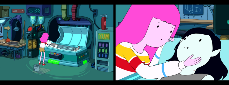 Попытка избавить Марселин от вампиризма выглядит как медицинская процедура. Ученая Принцесса Жвачка проводит операцию в своей лаборатории, продвигая идею того, что подобно тяжелой болезни, вампиризм может быть излечен. В момент проведения процедуры весь домик героев загорается ярким светом, что характерно для демонстрации научных экспериментов в мультфильмах, однако тут эти лучи света можно рассмотреть и как прощание с «темной» вампирской сущностью Марселин.