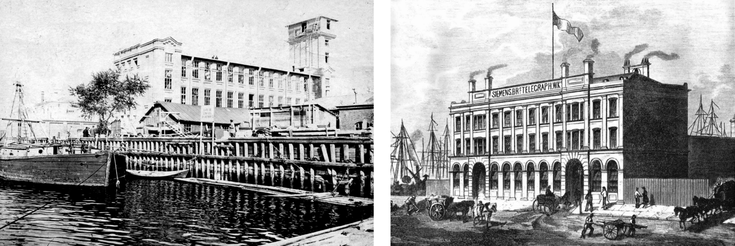 История компании, впоследствии ставшей электротехнической корпорацией Siemens, началась с нескольких европейских заводов, управляемых братьями Сименс в Санкт-Петербурге в период правления Александра II. Основание завода «Сименс» стало катализатором модернизации России. Его деятельность способствовала электрификации ключевых объектов города, таких как Невский проспект и Эрмитаж. Производственная деятельность предприятия быстро расширилась: после выпуска осветительных кабелей для передовых цехов на Васильевском острове, завод приступил к производству телеграфных кабелей, а позднее — трамвайных линий.