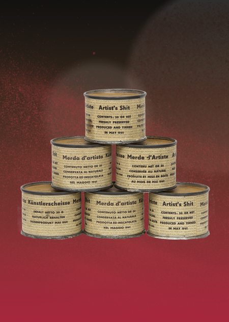 Пьеро Мандзони написал на консервных банках надпись «Дерьмо художника». Арт-система примет все, в том числе и данную работу. Содержимое баночки на самом деле не соответствует надписи. Текст здесь несет провокационную интенцию. Данная работа обсуждается до сих пор, часто публика воспринимает её как оскорбительную, несмотря на то, что внутри содержится вата. Более того, каждая работа из тиража продается за крупную сумму, что ярко показывает работу арт-рынка.