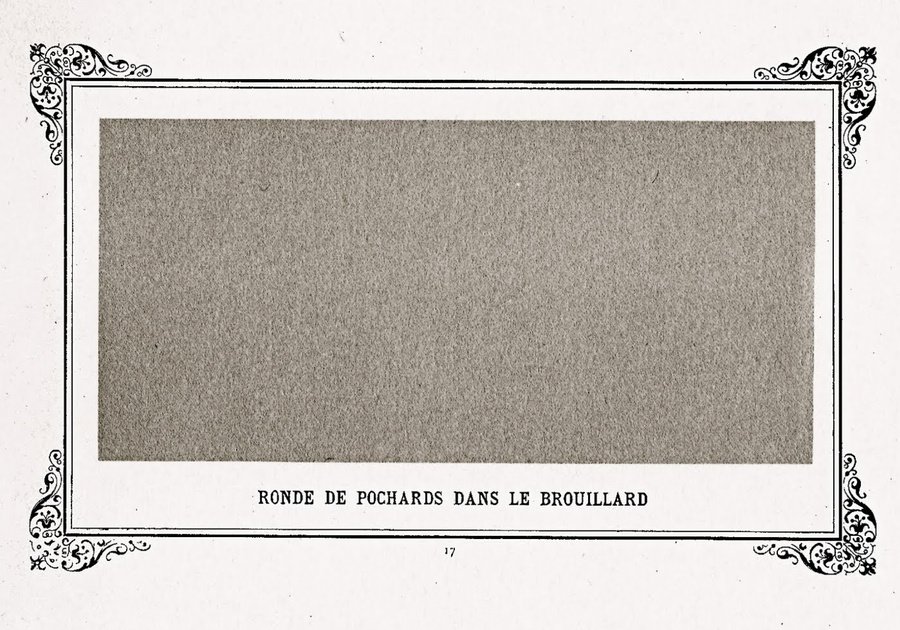 Альфонс Алле «Битва негров в пещере глубокой ночью», 1883 // «Сутенёры в расцвете сил, пьющие абсент, лежа на животах в траве», 1884 // «Хоровод пьяных в тумане», 1884