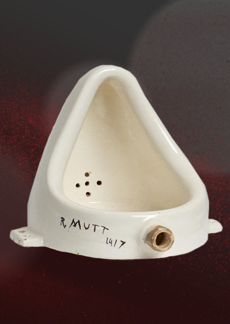 Невозможно не упомянуть и более раннее произведение Марселя Дюшана, в котором текст играл ключевую роль. «Фонтан», перевернувший предсталения об искусстве, был подписан «R. Mutt», что отсылало к названию магазина сантехники и переводилось как «дурак».
