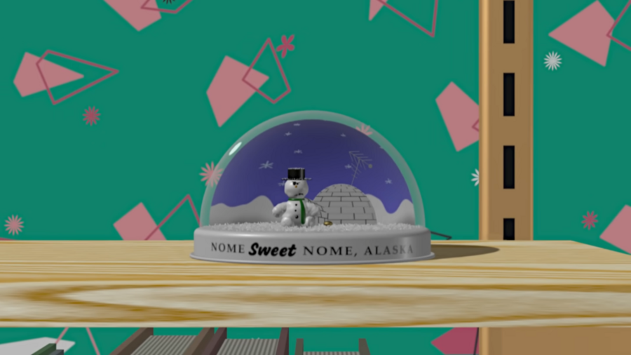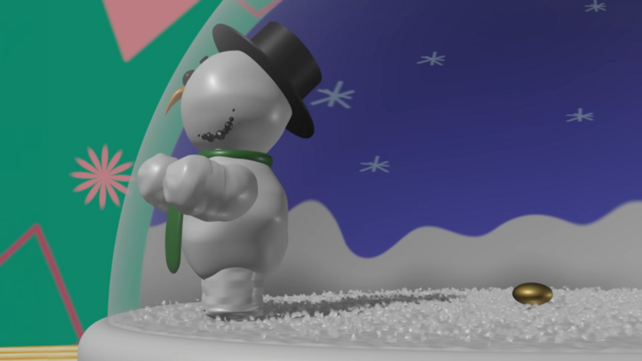 Снежный шар выступает как один из ключевых объектов в мультфильме. Поверхность не блестит, свойства стекла передаются лишь прозрачностью и изменением тона по краям полусферы.