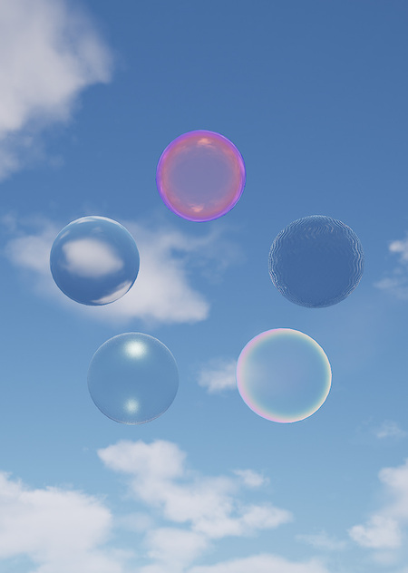 Разнообразие прозрачных материалов можно заметить в мультфильме «Knick Knack» 1989 года. Объекты в зависимости от роли имеют различный ограниченный набор физических качеств. Например, линзы очков на персонажах не просвечивают насквозь и не отражают окружающие предметы, а лишь блестят на свету.