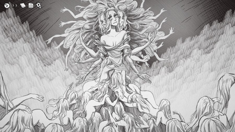 Скриншот из игры «Slay the Princess» [2023]. Разработчик: Black Tabby Games. Множественные версии Принцессы