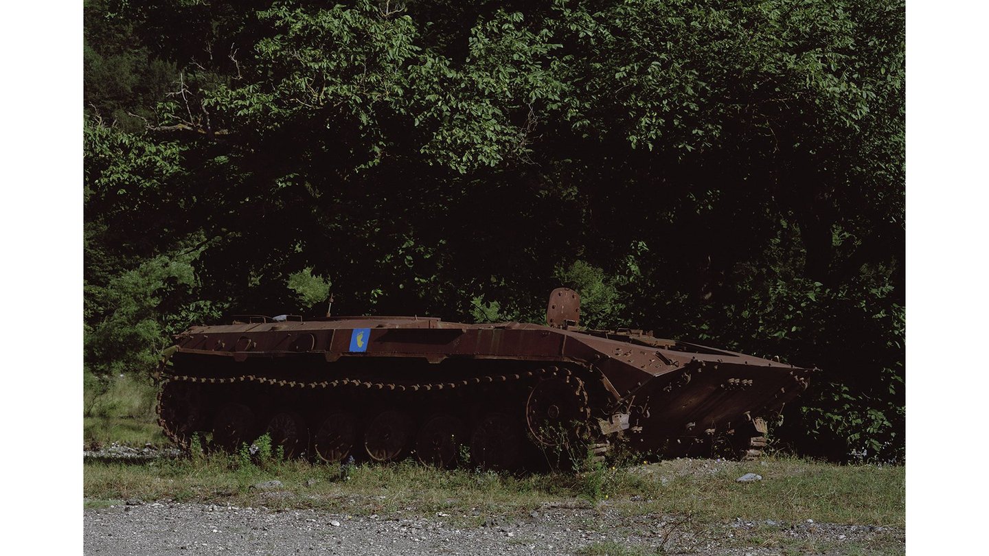 Художник соединяет пустые горные ландшафты, ржавеющую технику и портреты мужчин, участвовавших в войне, и создает образ пространства с неопределённым политическим будущим. Это пространство жизни «на линии соприкосновения», где ни документы, ни государственные границы не дают ощущение защиты, а память о конфликте становится больше чем сама принадлежность к этому месту.