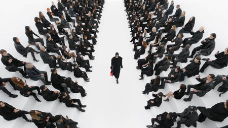 Коллекция Зима 25 представлена в симметричном лабиринте за кулисами с множеством входов и выходов — метафора творческого процесса. Линии размыты, планы рассадки перевернуты — каждому предоставлено место в первом ряду.