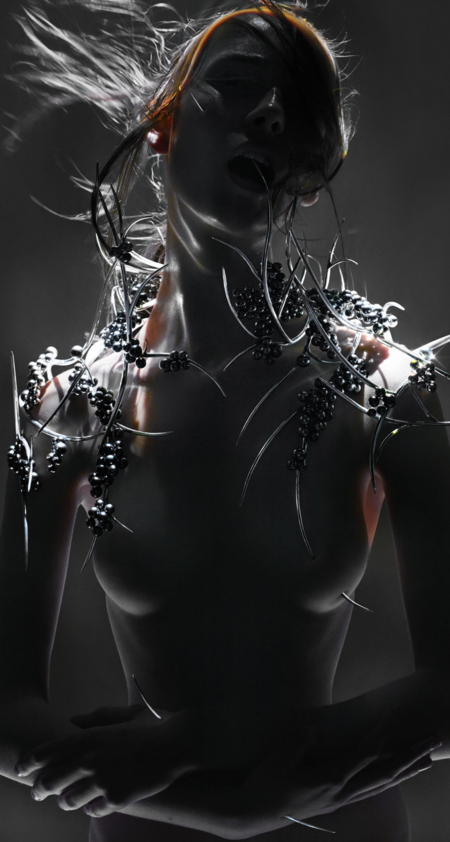 В проектах с McQueen тело приобретает трагическую и аморфную природу. Найт усиливает драматизм этих образов за счёт ракурсов, контрастов, преувеличений, добиваясь того, что мода становится эмоциональным жестом, а фотография актом переживания.