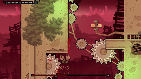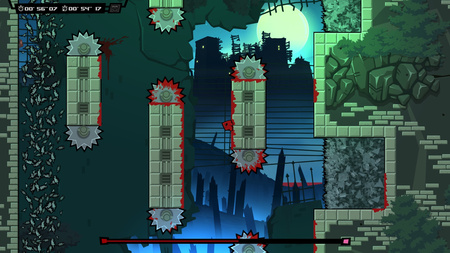 Например, в Super Meat Boy — парадигма 2D: миллиметровая точность прыжка. На представленных скриншотах можно отследить, что игроку не нужно задействовать пространственное мышление для определения глубины и вектора прыжка — двухмерная плоскость разрешает геймплею примитивность.