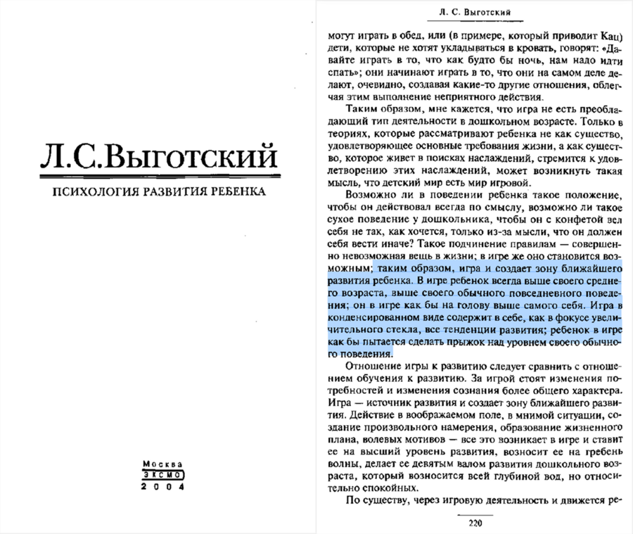 Подобным же образом интерактивные истории и обучающие игры позволяют ребёнку в безопасной форме пройти цикл от решения к результату и лучше усвоить урок. Как метко заметил Л. С. Выготский, «В игре ребёнок всегда выше своего среднего возраста, выше своего повседневного поведения; он в игре как бы на голову выше самого себя», то есть в условном сюжете он способен опережать свой актуальный уровень развития [1]. Нарративная игра предоставляет такую зону ближайшего развития, где ребенок может пробовать сложные модели поведения, наблюдать последствия и учиться на них.