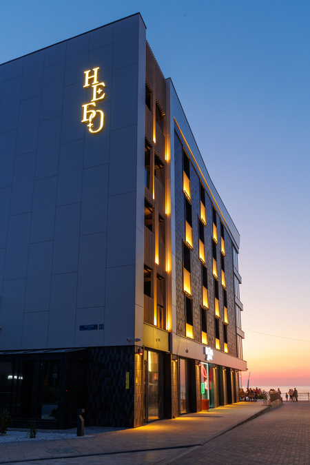 Реализованный проект архитектурного освещения апарт-отеля Небо в Калининграде