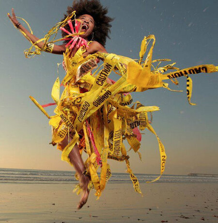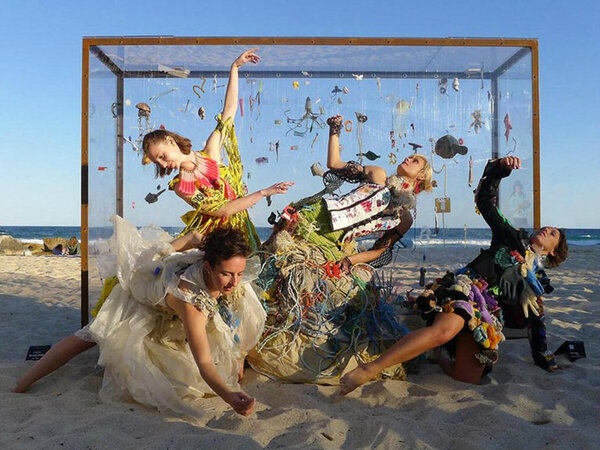Всё больше художников думают о том, какой след оставляет в окружающей среде их работа, обращаются к использованию вторичных материалов. Марина ДеБри использует в своих работах мусор, засоряющий пляжи и море. Она создает одежду, украшения, предметы для дома из найденных, выброшенных предметов.