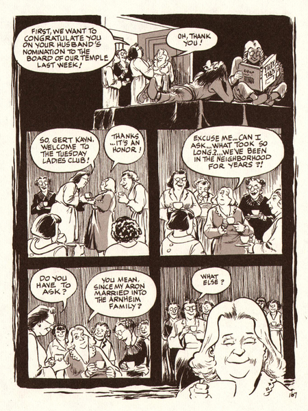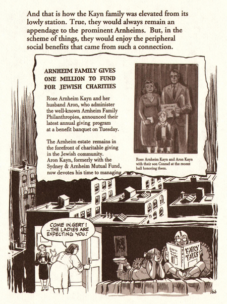 Чтобы рассмотреть более разнообразный диапазон работ, следующий пример взят из не супергеройского комикса: «The Name of the Game» Уилла Айснера, позже собранный в его антологии «Life, in Pictures». В этом комиксе, представляющем собой вымышленную историю, частично основанную на истории семьи жены Эйснера, есть рисунок фотографии в газетной статье (стр. 480), который, как и примеры из «Watchmen» и «When Is a Door?», выполнен в гораздо более реалистичном стиле, чем остальные панели.