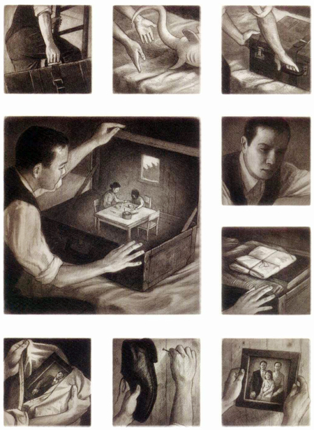 В «Arrival» Шона Тана семейная фотография главного героя с женой и дочерью — одна из немногих личных вещей, которые он смог взять с собой, эмигрировав в новую фантастическую страну. Многократное включение изображения фотографии показывает, как сильно мужчина скучает по своей семье и постоянно думает о ней.