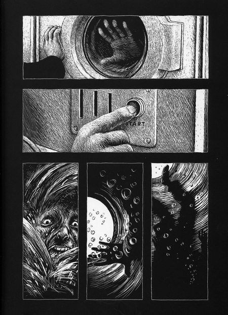 Фотографический «список жертв» в немом комиксе эффективно связывает воспоминания о мнимых обидах, которые пережил главный герой, с его нынешней жаждой мести. Томас Отт также использует фотографию для определения цели наемного убийцы в своей бессловесной истории «Washing Day», но, как и следовало ожидать, в мрачных работах Отта, убийство происходит не так, как планировал киллер.