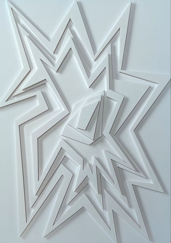 Белоснежная серия рельефов вдохновлена простотой и четкостью форм абстрактного супрематизма. Белый цвет, отражая все существующие, создает динамичность, меняясь в зависимости от тона и насыщенности освещения. Линии острых углов символизируют лучи света, которые являются соавторами, отвечая за цвет поверхностей, контрастность и ширину теней.