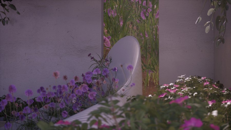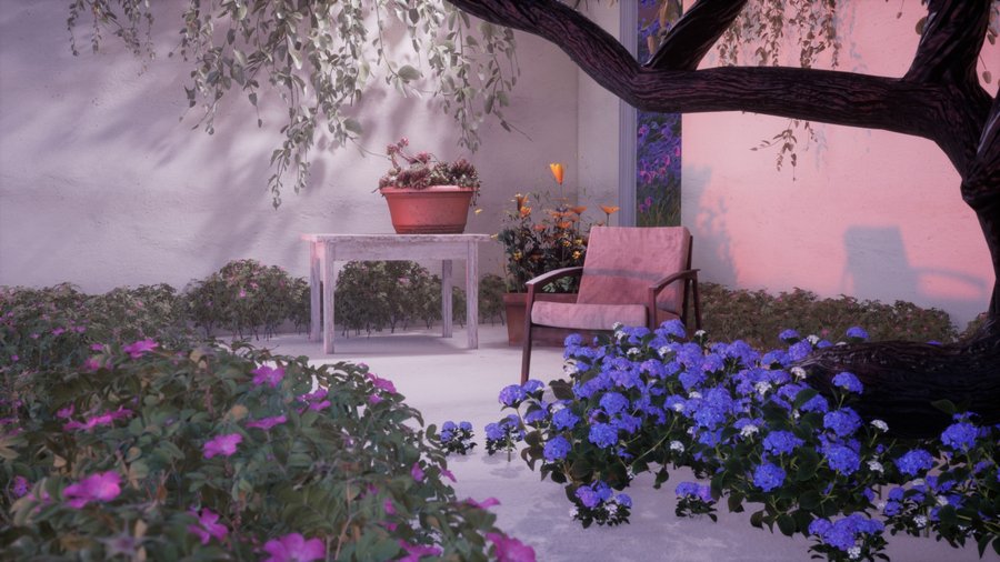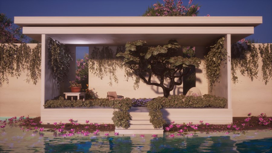 Virtual space — пространство, полное цветов, расположенное посреди океана и окруженное цветущими скалами.