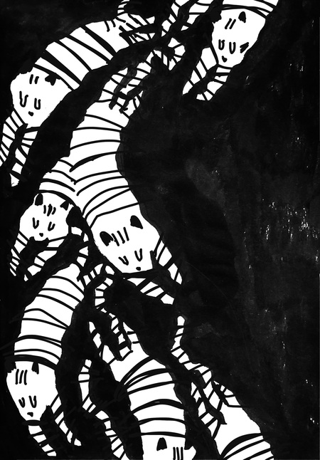 «Тигриный зин» включает в себя разные ритмичные композиции, абстракции и паттерны. Зин посвящен логотипу кофейни и бренда керамики CMTD SHOP, с которыми я работала, — тигру. Это более свободный взгляд на выбранную мной тему, поэтому такой зин может как понравиться частым покупателям керамики и посетителям кофейни, так и заинтересовать новых людей.