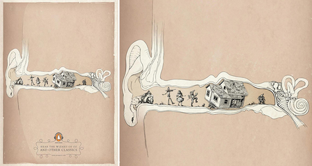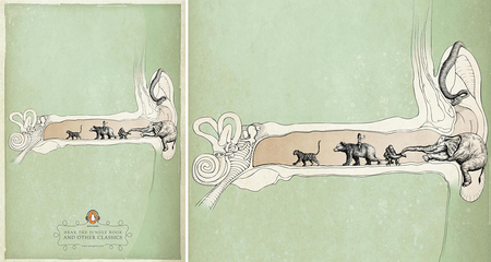 Тема этой рекламы — подчеркнуть воздействие аудиокниг на восприятие, ведь классические истории буквально «проникают» в сознание слушателя, как это делает музыка или повествование. Изображение показывает, как звуки и истории «входят» в ухо и пробуждают воображение, полностью погружая человека в сюжет.