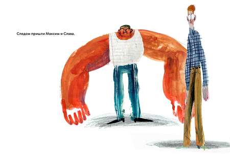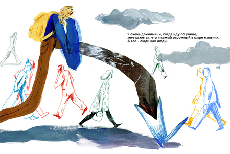 Тема внешности и телесности в книжке становится для Маши полем для исследования различных приемов изображения людей. Главный героя Коля по-подростковому нескладный, обладает гротесково длинными руками и ногами — такой выбор образа персонажа не только создает яркий характер, но и передает его внутренние переживания.