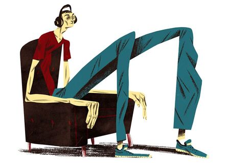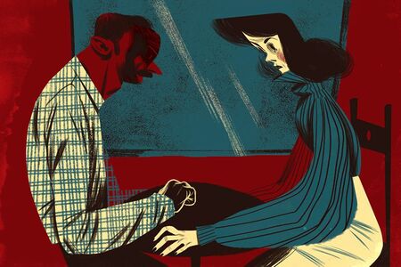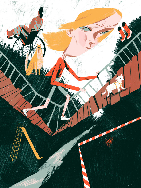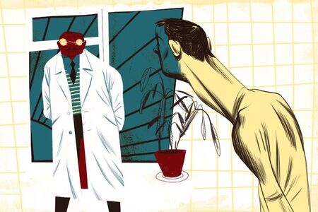 Цветовая палитра иллюстраций яркая, но в то же время меланхоличная: приглушенный «больничный» синий, бордово-красный, болезненный выцветший желтый. Они не только помогают расставить необходимые акценты, но и создают потрепанную, дискомфортную атмосферу неопределенности.