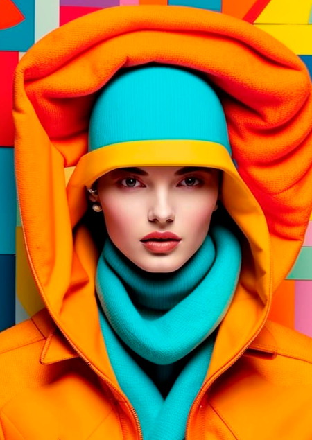 Промт запрошенный в чате GPT: напиши промт для генерации обложки каталога. девушка идет по подиуму в одежде из букв; иллюстрация.