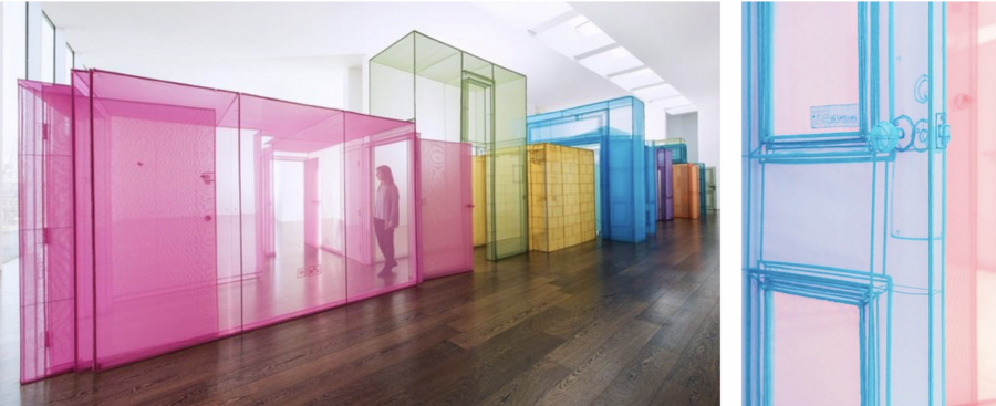 Вдохновленный своей перипатической жизнью, До Хо Су давно размышлял над идеей дома как физической структуры, так и живого опыта, границ идентичности и связи между человеком и группой в глобальных культурах. Тщательно воспроизводя архитектуру мест, в которых он жил и работал, таких как дом его детства и западные квартиры и студии, полупрозрачные тканевые структуры Су в одном масштабе придают форму представлениям о миграции, скоротечности и меняющейся идентичности. Эти идеи далее передаются в его работах, где переходные, соединяющие пространства между комнатами, такие как вестибюли и коридоры, метафорически говорят о движении между культурами и размытии общественного и частного, а также размышляют о прохождении собственной жизни художника и опыте человека, который развил корни во многих странах.