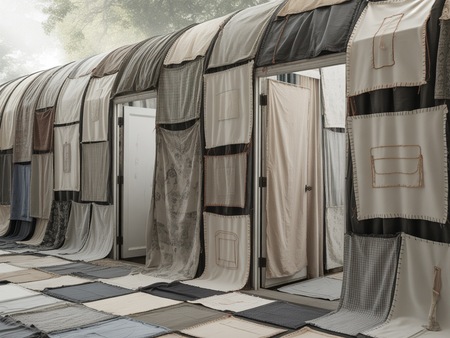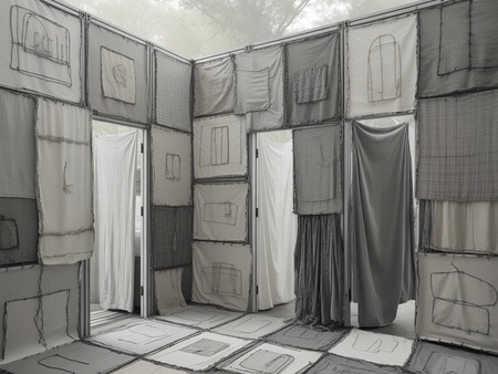 Все фрагменты сшиты вместе толстыми, контрастными, видимыми стежками. Эти швы не скрыты — они являются картой всех переездов, линией раздела и соединения разных жизней и пространств. Вдоль коридора расположено несколько дверных проемов. Их «двери» — это полупрозрачные ширмы из того же текстиля, висящие на липучках или молниях. Их можно отстегнуть, сложить, пропустить зрителя или оставить закрытыми. Они не отделяют комнаты, а лишь обозначают возможность перехода, которая никогда не бывает окончательной.