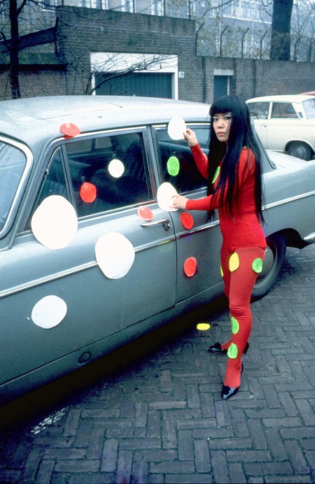 По словам художницы, покрывая что угодно — стену, платье, кошку, себя — бесконечными горошками, мы словно стираем это, обезличиваем, сглаживаем.