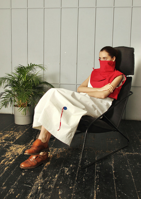 Впервые я делаю коллекцию о себе, и о том, что меня волнует. Офисная работа — это новая составляющая моей жизни. С культурой рабочего графика, обществом коллег, множеством мониторов, смешных кружек и именных пропусков в бизнес-центр. Здесь я не так давно, но уже начинаю разбираться в том, чем является моя профессия. Парусный спорт — мой второй образ жизни и большая-большая страть. Я занимаюсь яхтингом три года и весь сезон с (мая по октябрь) обязательно провожу на воде. Наблюдаю за своим спортивным прогрессом и мечтаю стать инструктором. Как эти две культуры сочетаются в человеке и какие метаморфозы рождают — об этом моя коллекция