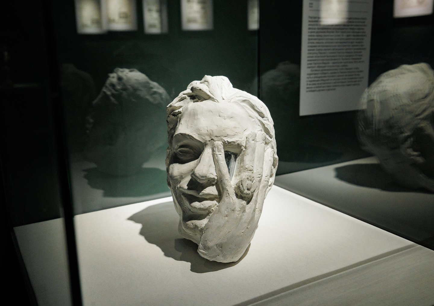Зал «Кабинет офтальмолога». На третьем изображении: Артём Рогачёв. «Портрет офтальмолога», 2025. Гипс
