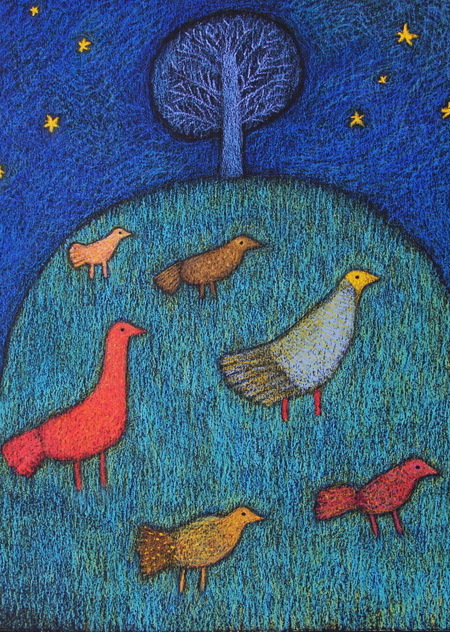 Иллюстрация Марии Пчелинцевой к книге «Колыбельные» в обработке Андрея Мороза (2020, бумага, гуашь, карандаш)
