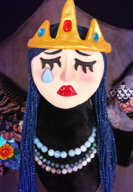 Скульптура создана по мотивам охотничьих трофеев, словно Сирин это не райское существо из легенд, а обычный зверь, которого не смотря на магию и божественность человек смог истребить.