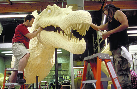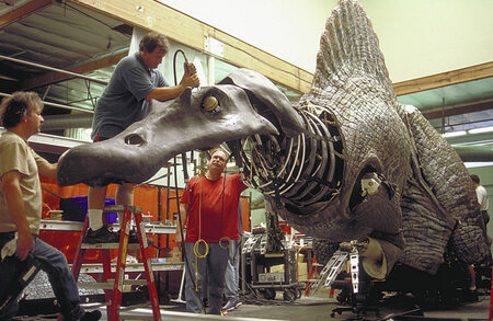 Первым аниматроником был больной Трицератопс. Его рост составлял 7,5 метров, а на создание его полноразмерной модели ушло несколько тонн глины. Формы были сделаны из эпоксидной смолы и синтаксической пены. Для лежачего Трицератопса было достаточно минимальных движений: движений глаз, небольших движений ног и имитации тяжелого дыхания. Грудная клетка функционировала на шарнирах, голова поворачивалась, а язык высовывался.