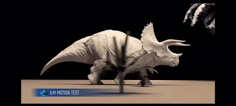 Традиционно динозавров и других существ создавали с помощью stop motion анимации (покадровой анимации). Фил Типпетт и американская студия Industrial Light & Magic разработали усовершенствованную технику — go motion (гоу моушен), которая позволила улучшить плавность движений. Однако Стивен Спилберг решил не использовать данную технологию в своём фильме, так как посчитал движение динозавров слишком резкими.