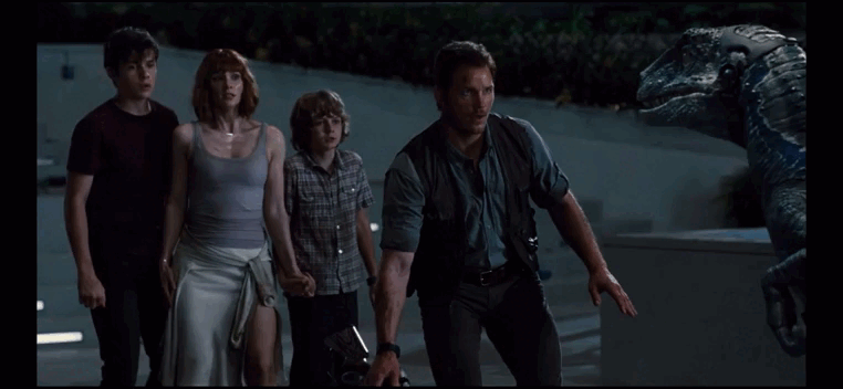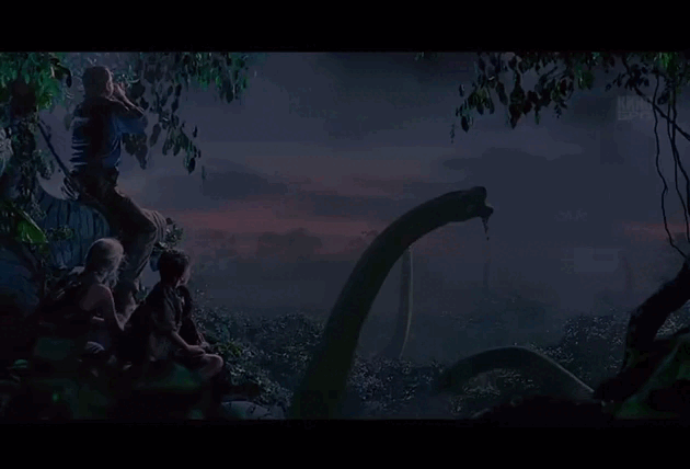 При отсутствии примеров в живой природе, аниматорам пришлось потратить несколько месяцев на посещение специальных занятий, где они определённым образом двигались, снимали свои движения на камеру, чтобы прочувствовать и воспроизвести движения динозавров на экран. По моему мнению обе технологии: аниматроника и CGI в данном фильме имеют свои преимущества. Аниматроника позволяет в более статичных кадрах, снятых крупным планом, взаимодействовать актерам с динозаврами, чтобы зритель в деталях рассмотрел тело динозавра. CGI даёт возможность передать скорость и динамичность этих существ.