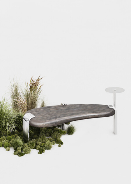 Скамья рассчитана на два посадочных места, выполнена из обработанного щита лиственницы и нержавеющей стали. Также в коллекции есть скамейка, рассчитанная на четырех и более пользователей.