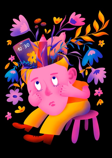 Разработка этикеток под три темы для бренда крафтового пива. За основу для этой серии я решила взять будни студента вышки. Главная героиня — студентка, которая старается совмещать учебу и работу, успевать на пары, генерировать идеи и не перегорать.