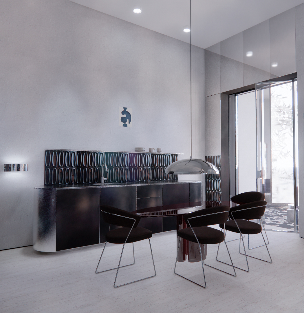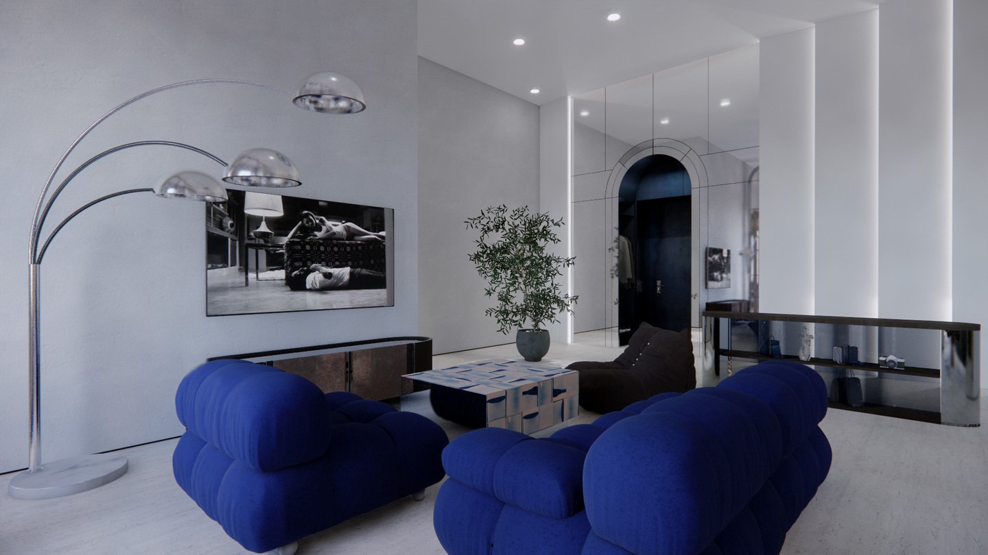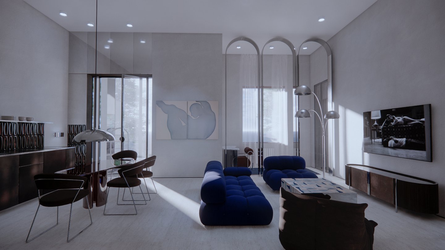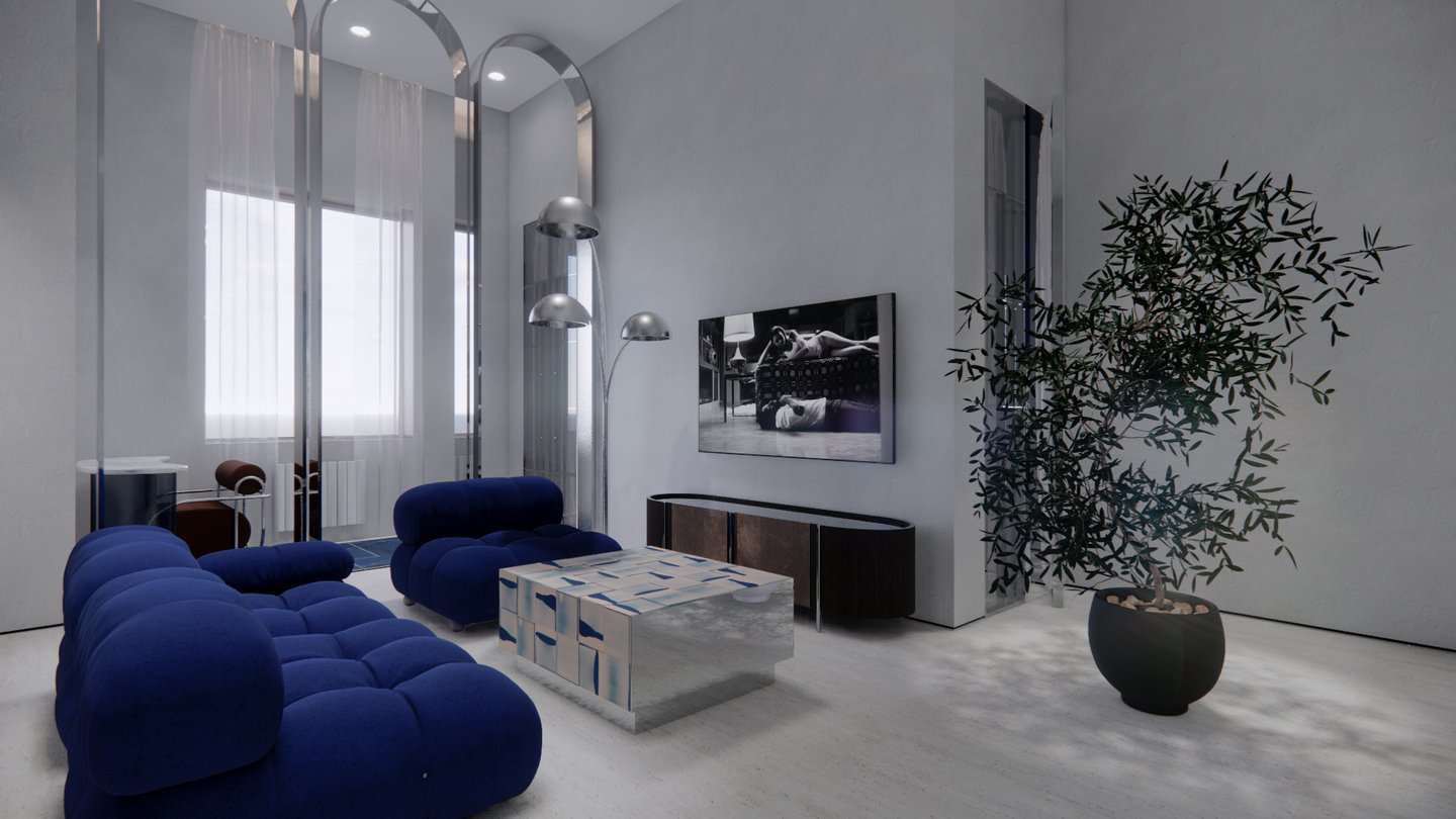 Дизайн-проект для творческой пары: Даян — ювелир, Агата — куратор арт-выставок. Им близки смелые формы и нестандартные решения, но при этом они ценят функциональность, уют и комфорт. Была поставлена задача отказаться от стандартного зонирования и спроектировать пространство как единое художественное полотно, где каждый угол — самостоятельная арт-зона со своим настроением, ритмом и светом.