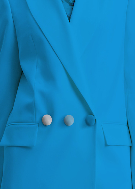 Появился отдельный акцент на фурнитуру: в ней объединяется функциональность и концептуальность. Пуговицы двубортного пиджака выстраиваются в логотип компании засчет особой последовательность цвета и расположения.