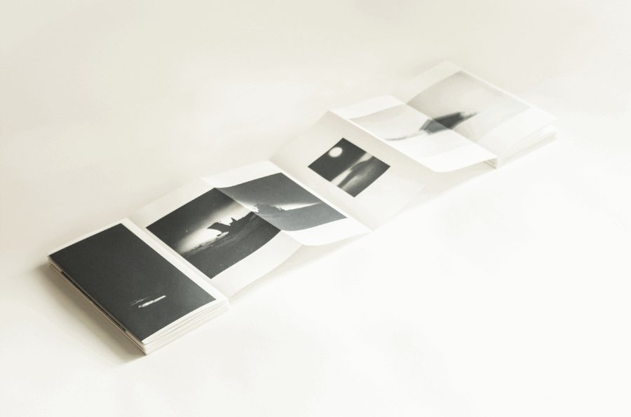 В этой серии я стараюсь понять, как воспоминания влияют на восприятие. Книга сделана в форме свитка-гармоники, помещенного в прозрачный пластиковый футляр от аудио-кассет. Такая форма передает идею времени, ритма и длительности, присущих музыке. Повествование строится линейно, раскрываясь через ритмически выстроенные образы света.