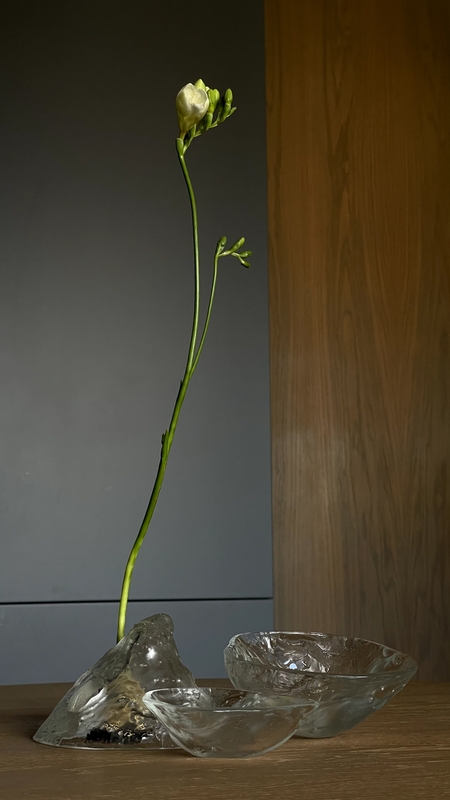 В переводе с санскрита Анитча अनित्य означает «непостоянство», «изменчивость» и является основополагающим осознанием. Всё в мире находится в постоянном движении. Что-то разрушается, что-то изменяется, что-то создается — все привычное всего лишь игра ума. Все изменчиво: все появляется и все исчезает. С таким осознанием, кажется, что сложно жить, поскольку в этом случае нет внешних опор. Но с другой стороны — это возможность поиска опоры внутри себя. Нащупать то, что дает чувство равновесия и благодаря чему можно сохранить баланс. Гармония внешнего и внутреннего, точка пересечения пространства, времени и эмоций — все об одном и начинается с признания непостоянства всего, поиска баланса внутри и проявления любви, внимания и заботы к себе, природе и миру. Композиция состоит из стеклянных сосудов, перевернутых вверх и вниз, через которые «прорастают» цветы, или же в них может «собираться» вода.