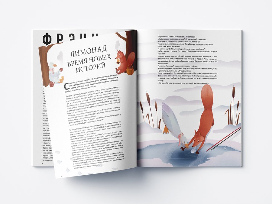 И завершающая статья посвящена издательству «Лимонад» и новогоднему рассказу о Гусике и Лисоньке.