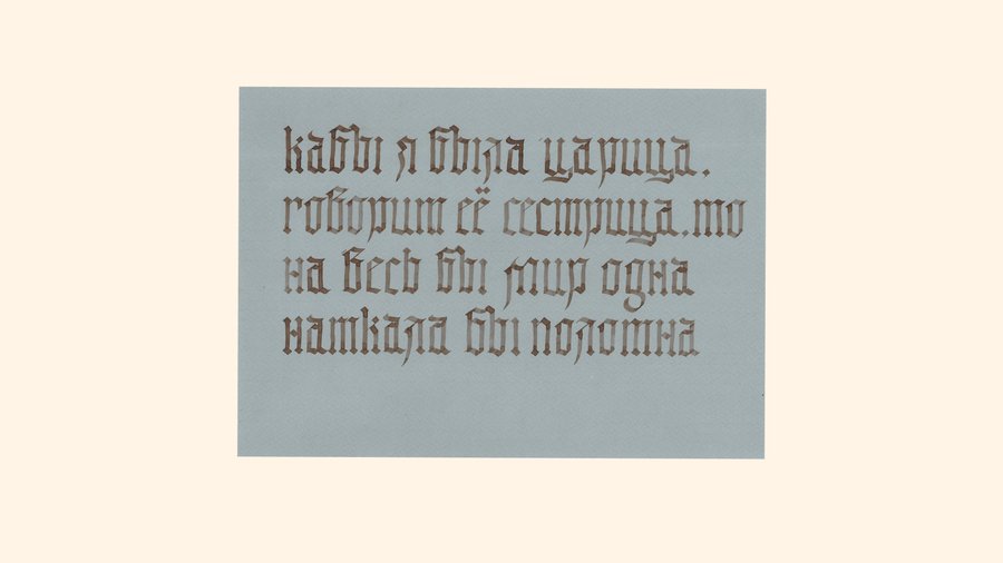 Полотно и нити стали главными элементами артбука. В качестве основного почерка была выбрана вязь, ведь оно напоминает тканое полотно.