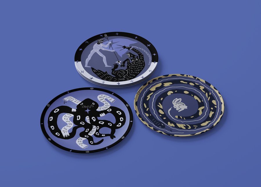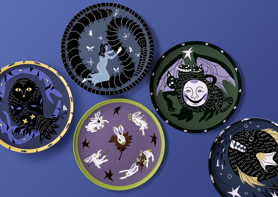 Серия иллюстраций для фарфоровой продукции, изображающая таинственных существ, населяющих неизведанные уголки мира. Иллюстрации разделены на два блока: о больших хищных существах и о на первый взгляд безобидных зверьках