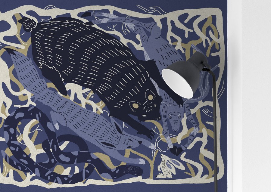 Серия иллюстраций для текстиля, посвященная жизни в самой глубине лесной чащи, взаимодействию лесных обитателей и взаимосвязанности всего в природе.