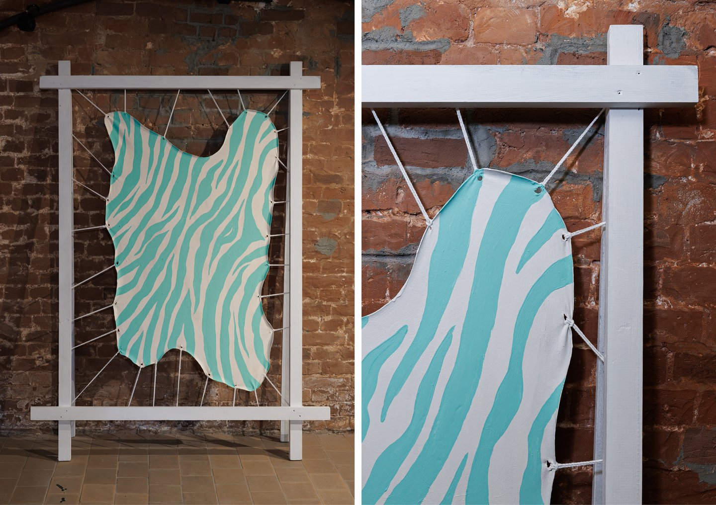 В финале художник пристальнее смотрит на себя, вопрошая об отсутствии. В работе «Шкура художника» (2025) Лысенко снимает с себя «кожу» с паттерном как у зебры и натягивает на раму. Рядом — «Семейный портрет» (2025), представляющий не конкретный образ, а детурнемент родственных связей.