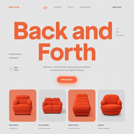 promt: make web site layout design for minimalist grotesque logo «BACK and FORTH» brand identity for modular inflatable furniture with orange colors