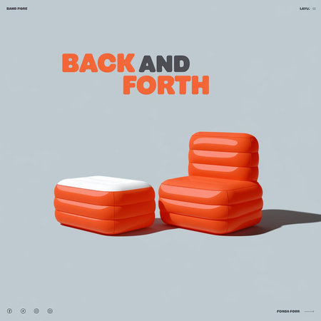 promt: add banner with minimalist «BACK and FORTH» brand identity for modular inflatable furniture. The design should feature clean, airy layouts with simple, modular